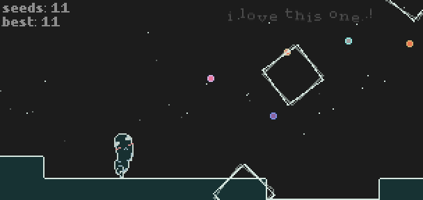 you are a cute! seeds are tasty! you're in space! space seeds are tastier! but... watch out for space squares!!!?